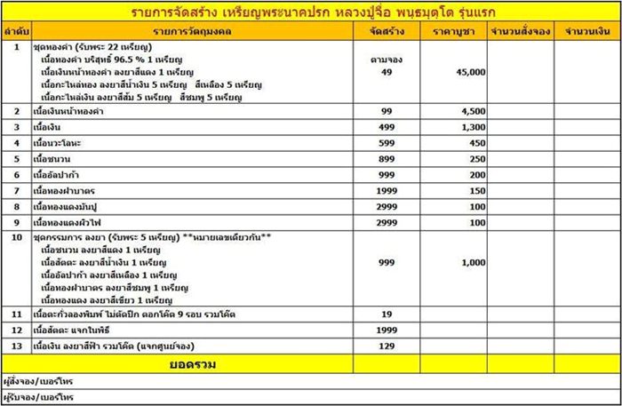 รายการที่ 10 ชุดกรรมการ (รับพระ 5 เหรียญ) มียอด 8 ชุด ราคาชุดละ 1,000
