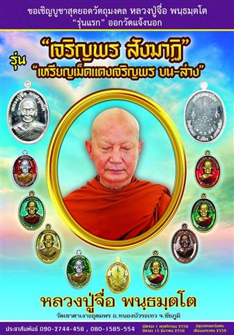 เหรียญเจริญพร สังฆาฏิ หลวงปู่จื่อ พนธมุตโต วัดเขาตาเงาะอุดมพร