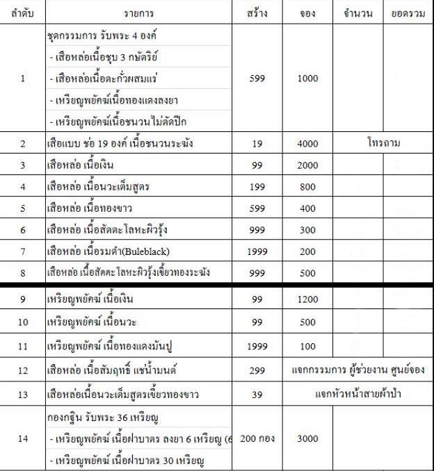 รายการที่ 2.เนื้อเงิน จอง 2000 บาท มียอด 1 องค์