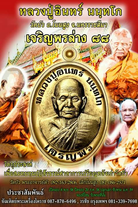 เปิดจองเหรียญเจริญพรล่าง ๘๘ หลวงปู่อินทร์ วัดบ้านบัว