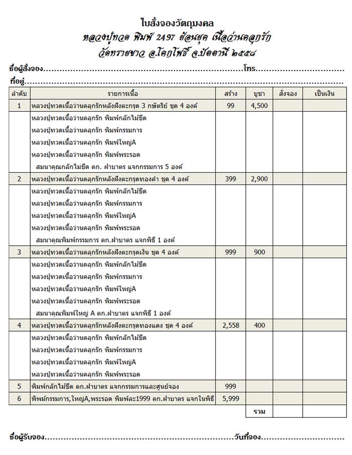 | หัวข้อกระทู้ : @@ HOT !! เปิดจอง หลวงปู่ทวดปี97 ย้อนยุค วัดทรายขาว @@ |