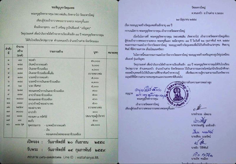 มี 1 ใบจอง ราคาใบละ 70000 บาท รับพระ วันอาทิตย์ที่ 14 ก.พ 2559 ที่วัดละหารใหญ่ เนื้อทองคำจัดสร้าง 88 เหรียญ