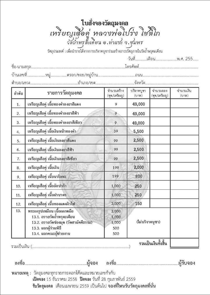 *** ราคาจอง+ ค่าจัดส่ง 100/ท่าน ***