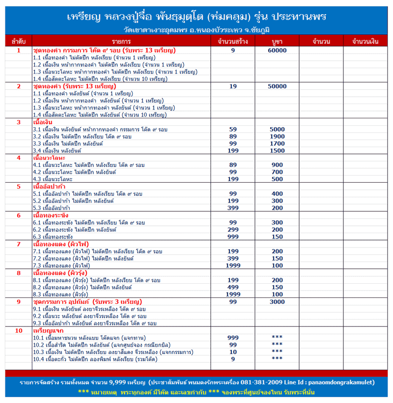 1. ชุดทองคำกรรมการโค๊ต 9 รอบ รับพระ 13 เหรียญ เต็มชุด ราคา โทรสอบถามครับ