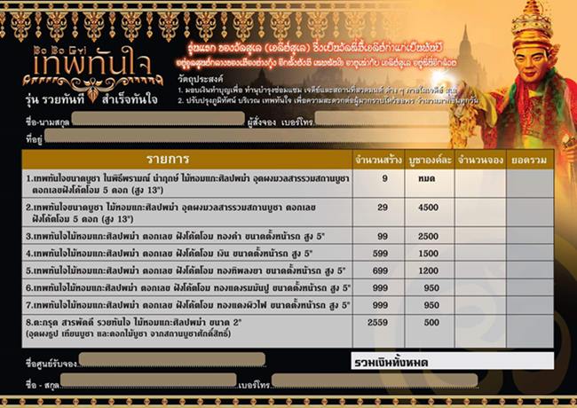 รายการที่ 8 มียอด 15 องค์ ราคาองค์ละ 500 บาท