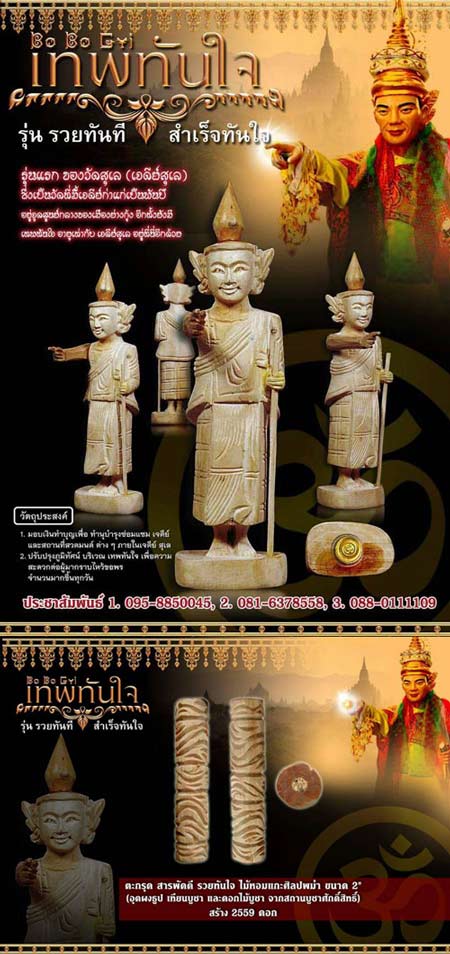 ไม้หอมแกะสลัก ทำมือศิลปพม่า ขนาดบูชาหน้ารถ และหน้าร้าน รุ่น รวยทันที สำเร็จทันใจ รุ่นแรกของวัดสุเล และจะมีพิธีปลุกเสก ณ เจดีย์สุเล เจดีย์ทรงแปดเหลี่ยม อายุนับพันปี ใจกลางเมืองย่างกุ้ง ประเทศพม่า