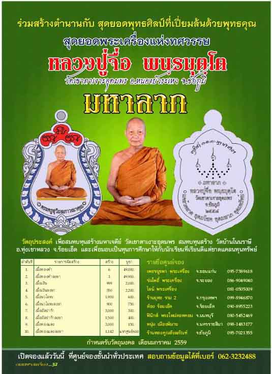 หัวข้อกระทู้ : เปิดรับจอง รุ่น มหาลาภ หลวงปู่จือ วัดเขาตาเงาะอุดมพร ชัยภูมิ