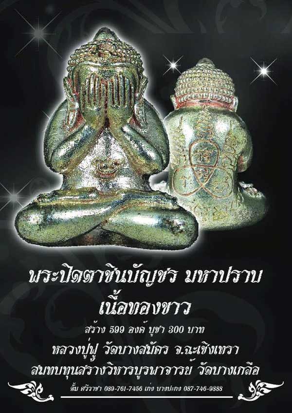 2.7 พระปิดตาชินบัญชรมหาปราบ ก้นอุดผง ฝังตะกรุดเงิน เนื้อสัตตะโลหะ มียอด 5 องค์