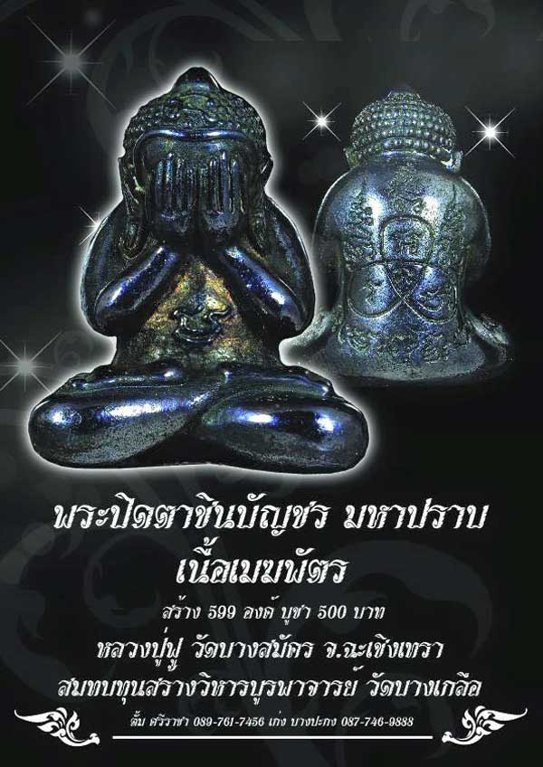 2.5 พระปิดตาชินบัญชรมหาปราบ ก้นอุดผง ฝังตะกรุดเงิน เนื้อเมฆพัตร มียอด 5 องค์
