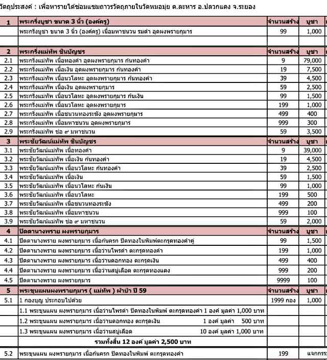 5.พระขุนแผนผงพรายกุมาร(แม่ทัพ) ผ้าป่า ปี 59 มี 8 ชุดๆละ 1,000 บาท