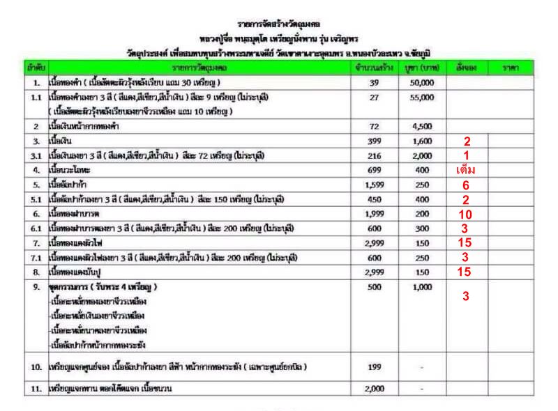 เปิดให้จองราคาวัด ตามรายการค่ะ
