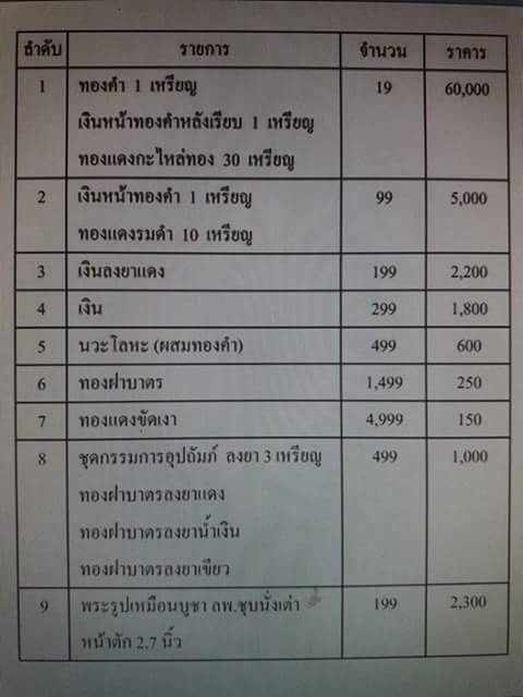 สนใจรายการไหนลงชื่อจองบูชาได้เลยครับ