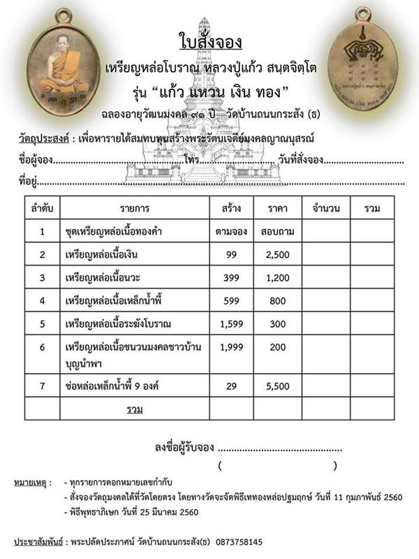 รายการ 6. เหรียญหล่อเนื้อชนวนมงคลชาวบ้านบุญนำพา ราคาจอง 200.-บาท มียอด = 3