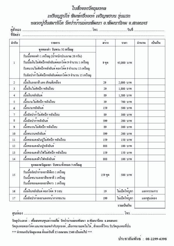 *** กำหนดรับพระ 15 เมษายน 2560 เป็นต้นไป