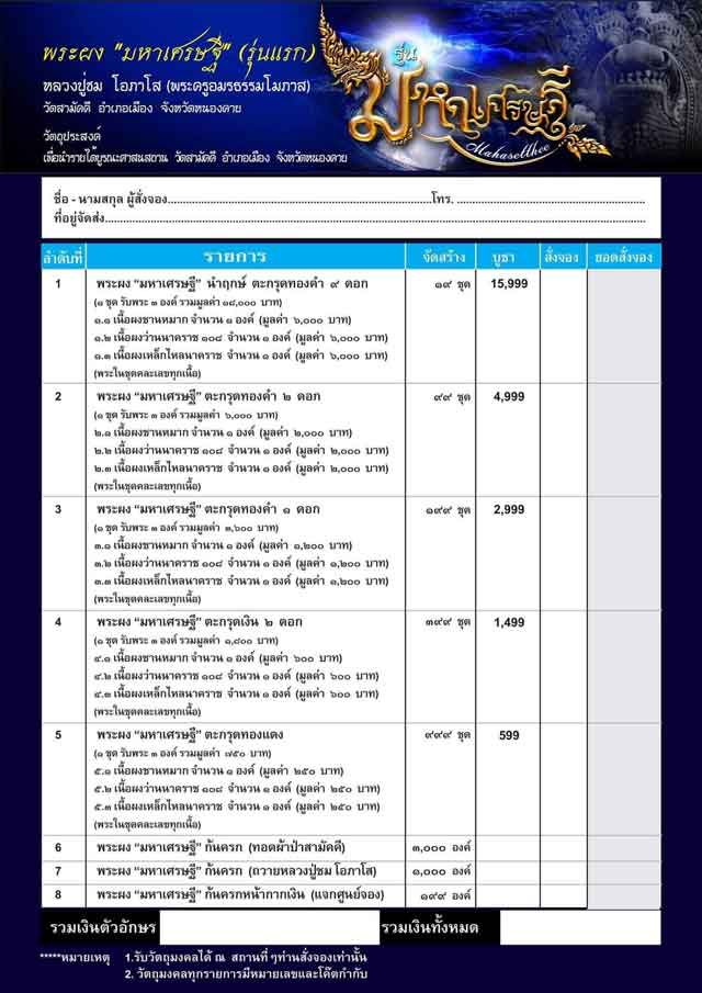 3.ชุดพระผง มหาเศรษฐี ตะกรุดทองคำ มี 1 ชุดๆละ 2,999 บาท