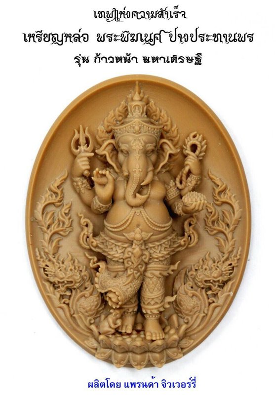 เหรียญหล่อ พระพิฆเนศ ปางประทานพร เทพเจ้าแห่งความสำเร็จ รุ่นก้าวหน้า มหาเศรษฐี เสกโดยหลวงพ่อหนุน สุวิชโย วัดพุทธโมกพลาราม อ.โพนนานแก้ว จ.สกลนคร