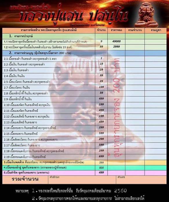 รายการ 2. รายการร่วมบุญลุ้นโชค (ปิดผนึกลุ้นโชคทุกเนื้อ) ราคาจอง..200.-บาท มียอด =20องค์