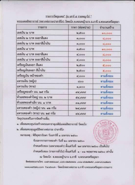 เปิดจอง "แหวน" หลวงพ่อรวย วัดตะโก รุ่น เสาร์ ๕ ปี ๒๕๖o