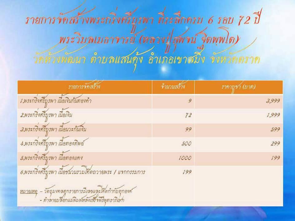 รายการที่ 6 จำนวนจัดสร้าง 199องค์ ขอเปิดที่ 2000บาทรวมส่งครับ
