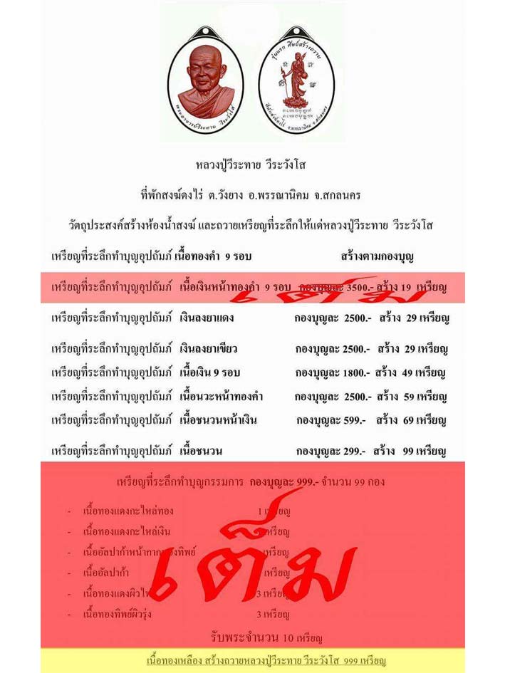 [[[เปิดจอง]]]หลวงปู่วีระทาย รุ่นแรก ที่พักสงฆ์ดงไร่ จังหวัดสกลนคร
