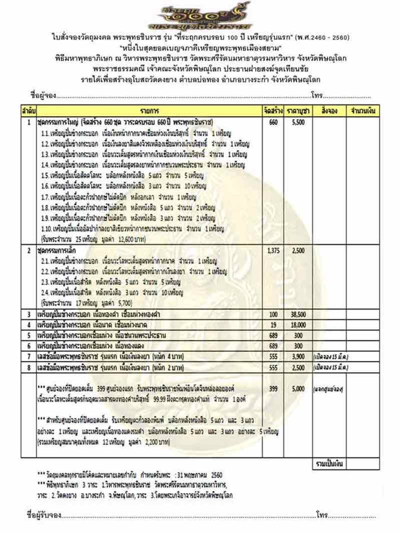 พระพุทธชินราช ๑๐๐ ปี(2460-2560) วัดพระศรีรัตนมหาธาตุวรมหาวิหาร จังหวัดพิษณุโลก [แยกชุดกรรมการเล็ก]