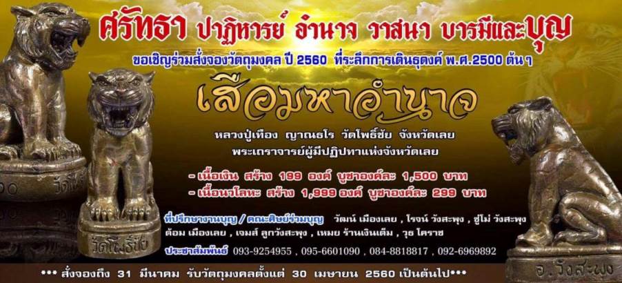 เปิดจอง เสือ มหาอำนาจ หลวงปู่เทือง วัดโพธิ์ชัย จ.เลย ราคาจอง ด่วนนน