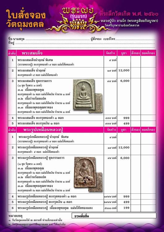 รายการ 5.พระผงรูปเหมือน ตะกรุดเงิน 1 ดอก ราคาองค์ละ 720.-บาท มียอด = 9 องค์