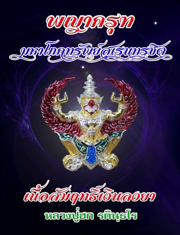 พญาครุฑ มหาโภคทรัพย์ รุ่นแรก รุ่น สุเรนทรชิต หลวงปู่ฮก รตินฺธโร วัดราษฏร์เรื่องสุข (มาบลำบิด) จ.ชลบุรี เมตตาปลุกเสก