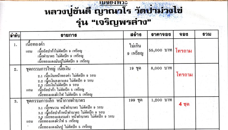รับวัตถุมงคลประมาณ มิถุนายน 60 เป็นต้นไป