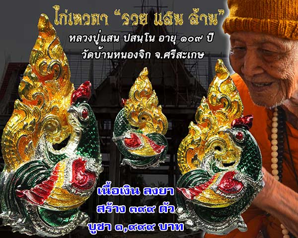 เปิดจอง ไก่เทวดา "รวย แสน ล้าน" หลวงปู่แสน ปสนุโน วัดบ้านหนองจิก อ.ขุนหาญจ.ศรีสะเกษ เกจิแห่งอีสานใต้ อายุ ๑๐๙ ปี