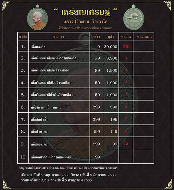 [[[เปิดจอง]]]เหรียญเศรษฐี หลวงปู่วีระทาย วีระวังโส ที่พักสงฆ์บ้านดงไร่ จังหวัดสกลนคร