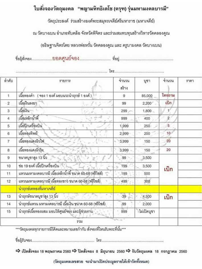 [[[เปิดจอง]]]ครุฑ รุ่น"มหามงคลบารมี" ครูบามงคล วัดบางเบน จังหวัดพิจิตร