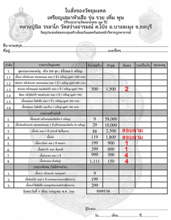 เปิดจองเหรียญเสมาหัวเสือ รุ่นรวย เพิ่ม พูน หลวงปู่นิล วรลาโภ วัดสว่างอารมณ์ อ.บางละมุง จ.ชลบุรี ราคาวัดค่ะ