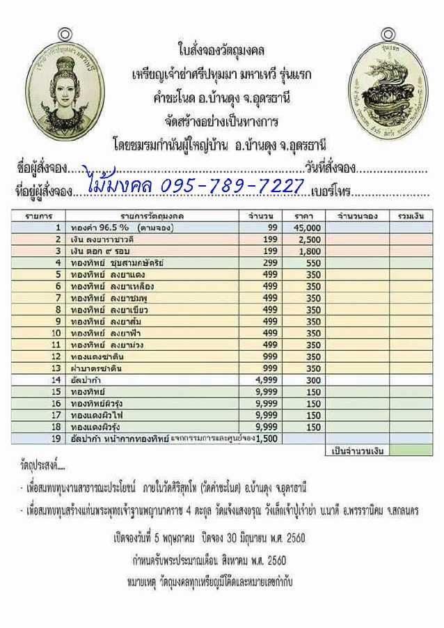 *** ลูกค้านอกเวปโทรสั่งจองได้ที่เบอร์ 080-984-1175 หรือ 095-789-7227 ***