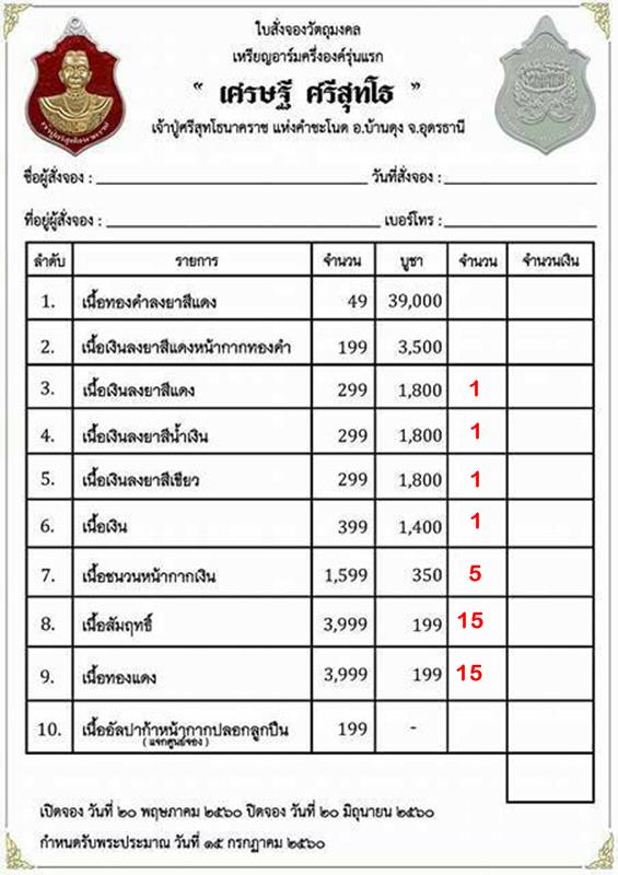 รับวัตถุมงคล 15 กรกฎาคม 60 เป็นต้นไป