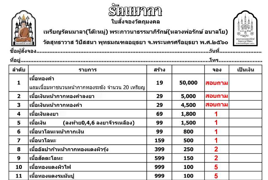 | หัวข้อกระทู้ : ไม้มงคลเปิดจอง เหรียญรัตนมาลา(โต๊ะหมู่) หลวงพ่อรักษ์ วัดสุทธาวาส วิปัสสนา จ.พระนครศรีอยุธยา |