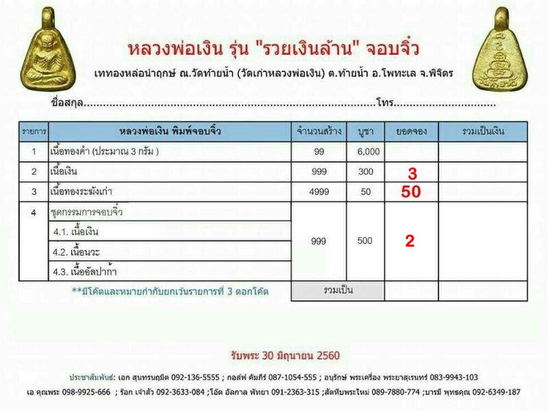 รับพระ 30 มิถุนายน 2560 เป็นต้นไป