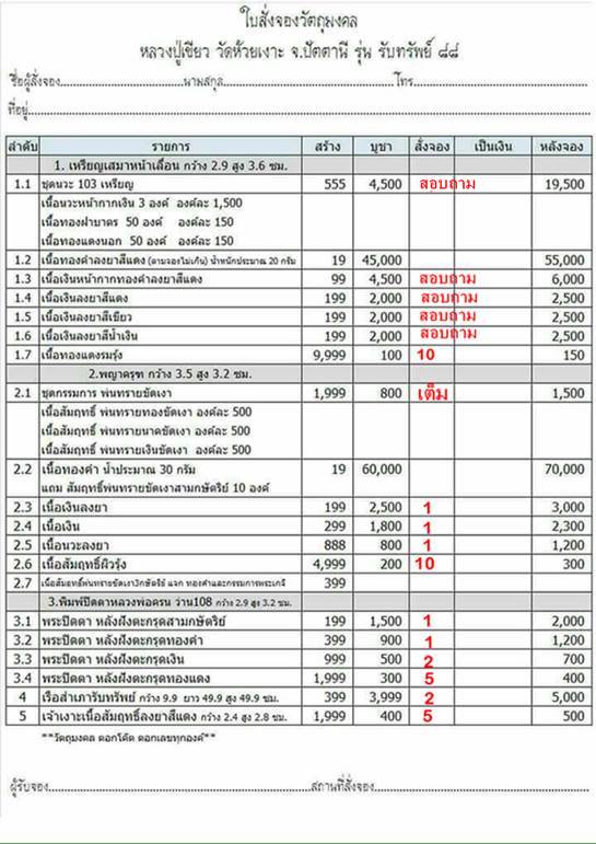 วัตถุมงคลทุกรายการ ตอกเลขและโค๊ด ทุกองค์