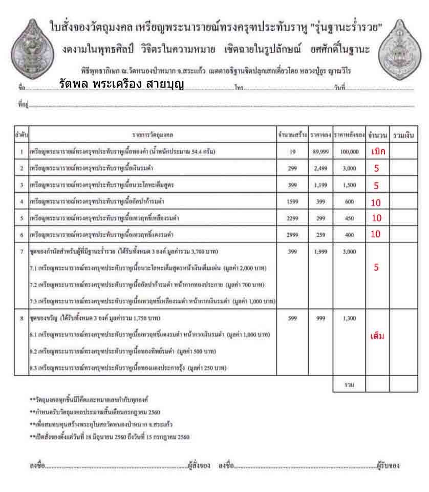เปิดจอง..เหรียญพระนารายณ์ทรงครุฑประทับราหู "รุ่น ฐานะร่ำรวย" ร่วมสร้างอุโบสถวัดป่าหนองหมาก จ.สระแก้ว