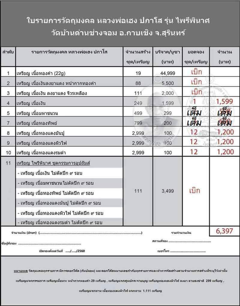 รายการ 7.เนื้อทองทิพย์ มียอด = **[ยอดเต็ม]** เหรียญ เหรียญละ 200 **[ยอดเต็ม]**