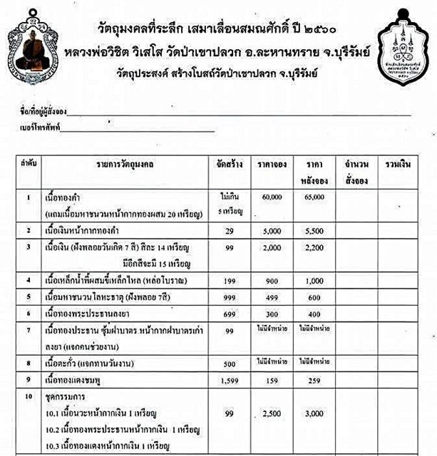 รายการ 10. ชุดกรรมการ(รับพระ 3 เหรียญ) ราคาจอง 2,500.-บาท มียอด = 4 ชุด