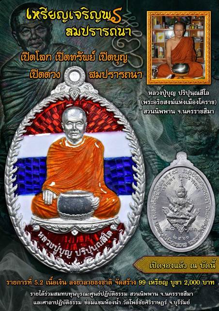 *** เปิดจอง// เหรียญเจริญพร สมปราถนา หลวงปู่บุญ ปริปฺนฺณสีโล สวนนิพาน จ.นครราชสีมา