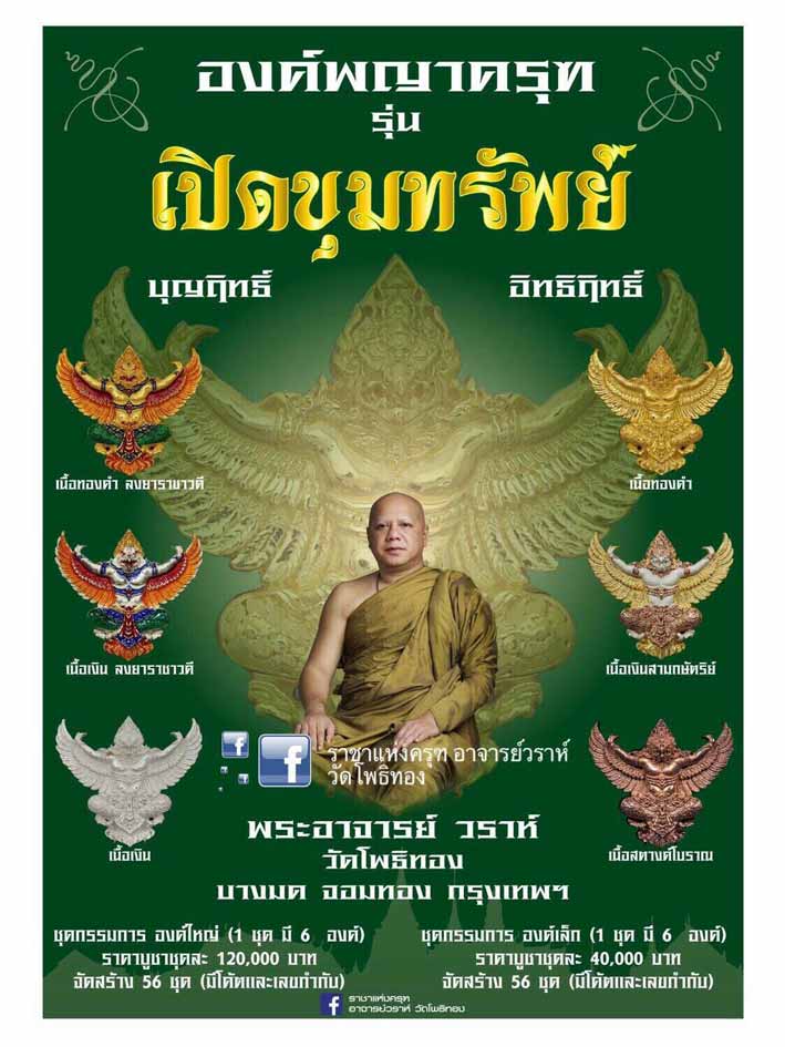 [[[ยอดแบ่งราคาบวก]]]องค์พญาครุฑ รุ่น"เปิดขุมทรัพย์" พระอาจารย์วรา วัดโพธิ์ทอง กรุงเทพมหานคร