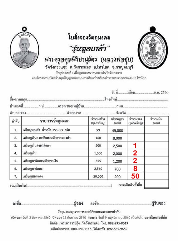 รับวัตถุมงคลเดือนพฤศจิกายน 60