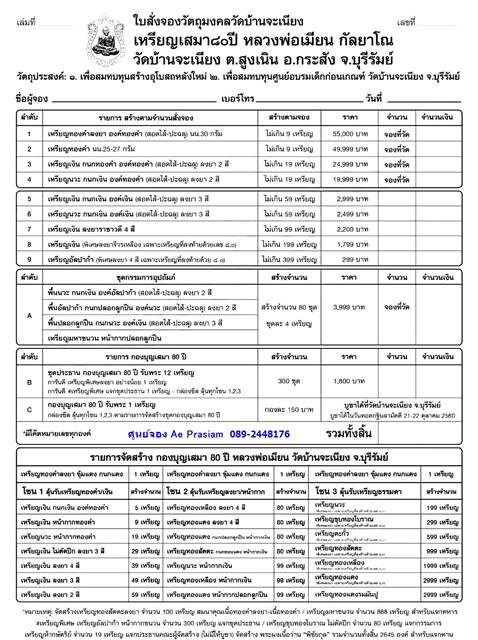 รายการ B.ชุดประธานกองบุญ (รับพระ 12 เหรียญ) ราคาจอง 1,800.-บาท มียอด = 1