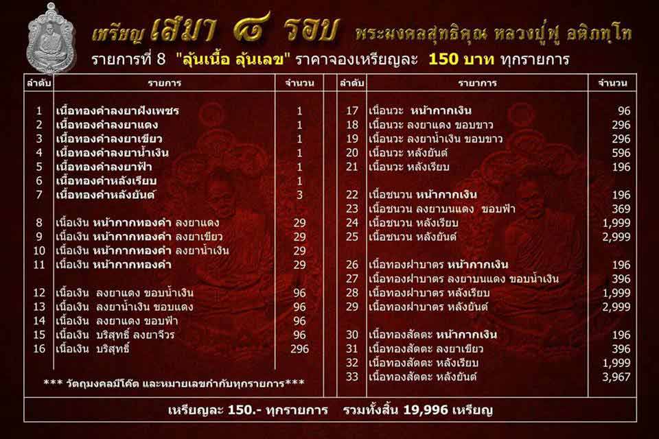 8.ลุ้นเนื้อ+ลุ้นเลข((สุดคุ้มน่าลุ้น*ตั้งแต่รายการ1-33)) ราคา 150 บาท มียอด 70 เหรียญ