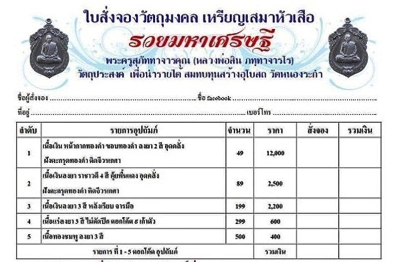 *** เปิดแบ่งยอดจอง รายการอุปถัมภ์ เหรียญเสมาหัวเสือ หลวงพ่อสิน รุ่น"รวยมหาเศรษฐี"