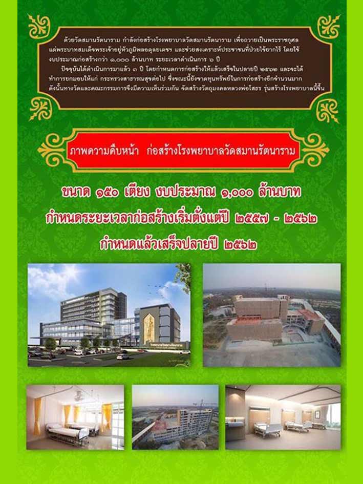วัตถุประสงค์:รายได้ทั้งหมดสร้างโรงพยาบาลวัดสมานรัตนาราม และซื้ออุปกรณ์การแพทย์