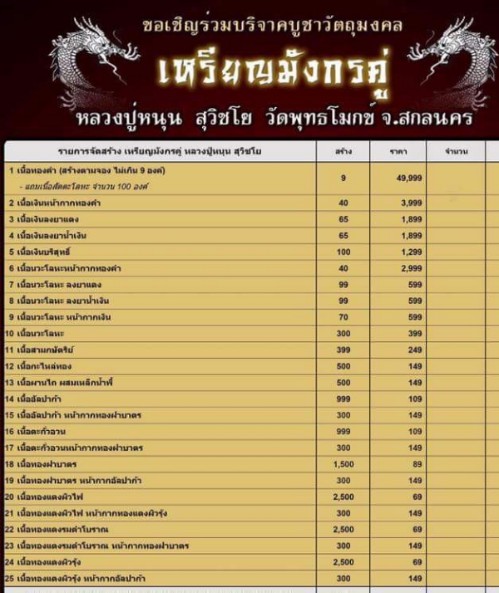 12.เนื้อกะไหร่ทอง มี 5 เหรียญๆละ 149฿