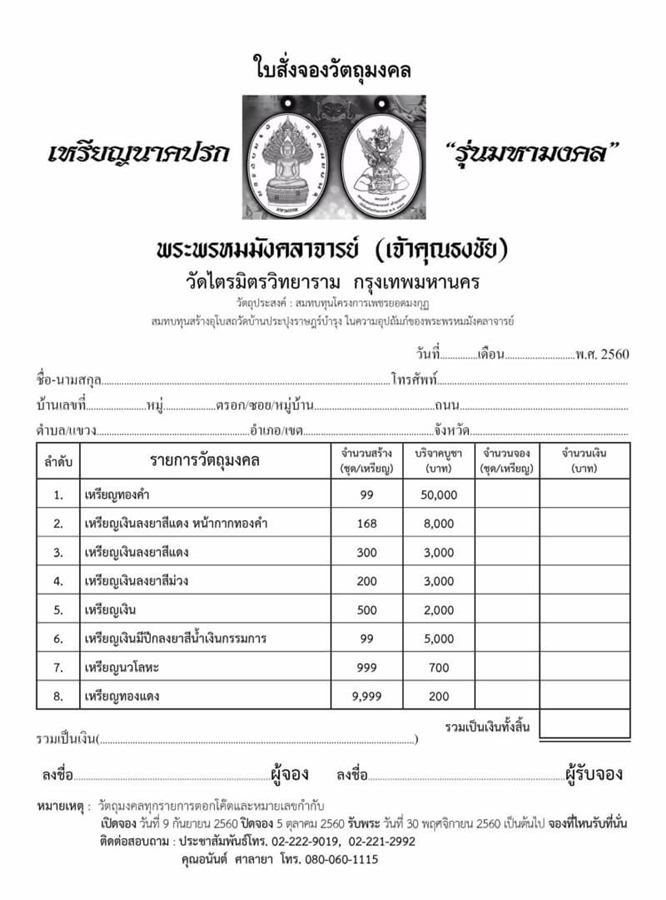 *** เปิดจอง// เหรียญนาคปรก รุ่น"มหามงคล" พระพรหมมังคลาจารย์ (เจ้าคุณธงชัย) วัดไตรมิตรวิทยาราม กรุงเทพมหานคร